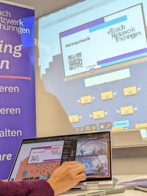 Mit der Prompting-Station stellen wir den Thüringer Hochschulen ein praktisch-kreatives Tool zur Verfügung, um sich mit dem Thema Künstliche Intelligenz auseinander zu setzen. Mit den integrierten Anwendungen können Lehrende verschiedene Tools ausprobieren, Ideen entwickeln und für ihre Lehrveranstaltungen nutzbar machen. Die Station kann in freien Settings eingesetzt werden und erlaubt auf niedrigschwelliger Ebene das Ausprobieren unspezifischer Recherchen und das Realisieren spontaner kreativer Ideen. Beim Talk@eTeach am 21. März stellte unsere Fachstelle für Medientechnologie Zaryab Chaudry das Konzept und die integrierten Tools der Prompting-Station vor. Außerdem hatten alle Teilnehmenden der hybriden Veranstaltung die Möglichkeit, das Prompten auszuprobieren und sich zu aktuellen Szenarien, Fragen und Wünschen auszutauschen. Wenn Sie zusätzliche Fragen haben oder die Prompting-Station an Ihre Hochschule bringen möchten, wenden Sie sich gern an Zaryab Chaudry.